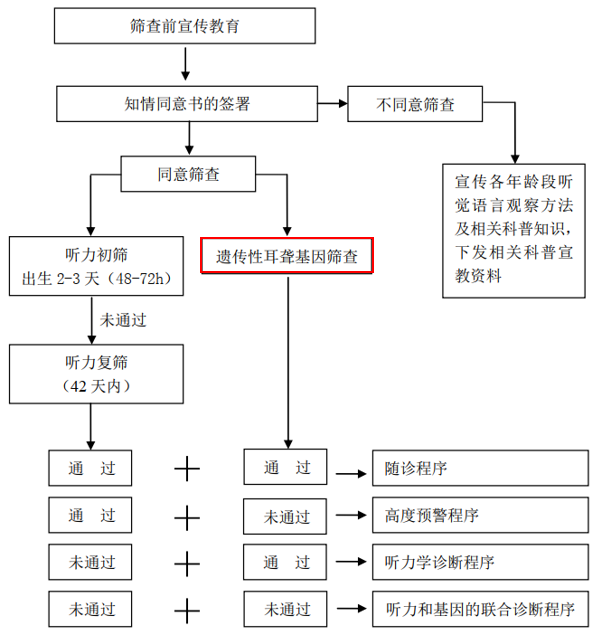 图1 深圳市新生儿听力与遗传性耳聋基因联合筛查流程图