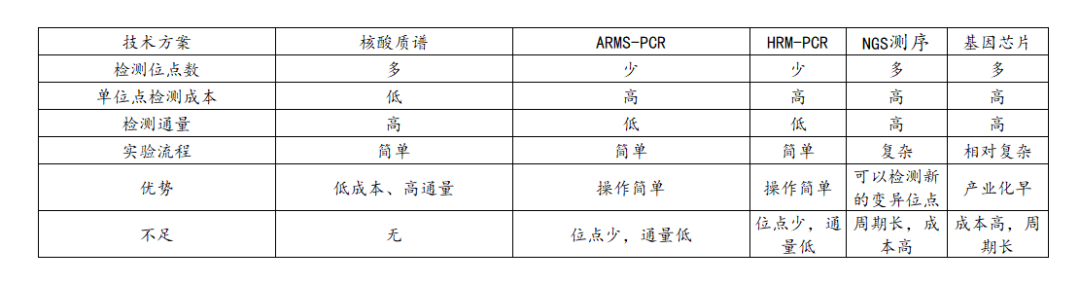 目前,遗传性耳聋基因临床诊断主要有核酸质谱法、PCR法相关方法、NGS测序法及基因芯片法。基因芯片法是最早在临床推广的方法,但成本相对较高。即使集合一批样品进行检测可以在一定程度降低成本,但又会限制通量的灵活性,延长检测周期,NGS测序同样存在此问题,所以基因芯片法和NGS测序法仅适合样品量检测非常大的检测中心使用。以ARMS-PCR和HRM-PCR为代表的新一代PCR技术检测周期快,但受限于技术原理目前临床的试剂盒仅能针对几个位点进行检测,临床指导性大打折扣。而核酸质谱方法一次可以检测20多个位点,临床指导意义大;而且不需要凑样通量灵活,可以有效保证检测周期;此外,核酸质谱法使用常规PCR试剂,将多重靶标集中到一个反应,无需荧光、探针等,单位点检测成本低,是遗传性耳聋基因检测的最佳方案。