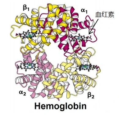 血红蛋白是红细胞内运输氧的特殊蛋白质,是使血液呈红色的蛋白,由珠蛋白和血红素组成,其珠蛋白部分是由两对不同的珠蛋白链(α链和β链)组成的四聚体。