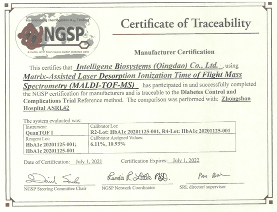 答:本次融智生物质谱产品获得NGSP的认证,不仅是公司产品技术在此领域新的突破,更是证明了MALDI-TOF MS质谱在更多领域的无限可能。从我们熟知的微生物、核酸到糖化血红蛋白,融智生物一如既往地坚持打造国产自主知识产权的质谱,为客户提供优质的解决方案,持之以恒地为高端生命科学仪器的国产化、国人医疗健康水平的提高做出贡献。
