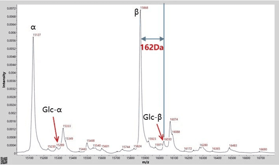 答:目前检测糖化血红蛋白的主要方法是高效液相色谱法(HPLC)和电泳法,市面上也大多是这两种方法获得NGSP认证。与常规检测系统不同,MALDI-TOF MS检测的是游离珠蛋白链,而不是四聚体,因此对于有变异血红蛋白(hemoglobin variant)干扰的样品,以上两种方法均不能给出准确的检测结果,而MALDI-TOF MS通过正常和变异链之间足够的质量差可以检测到变异链,可以准确地鉴别和定量变异血红蛋白。