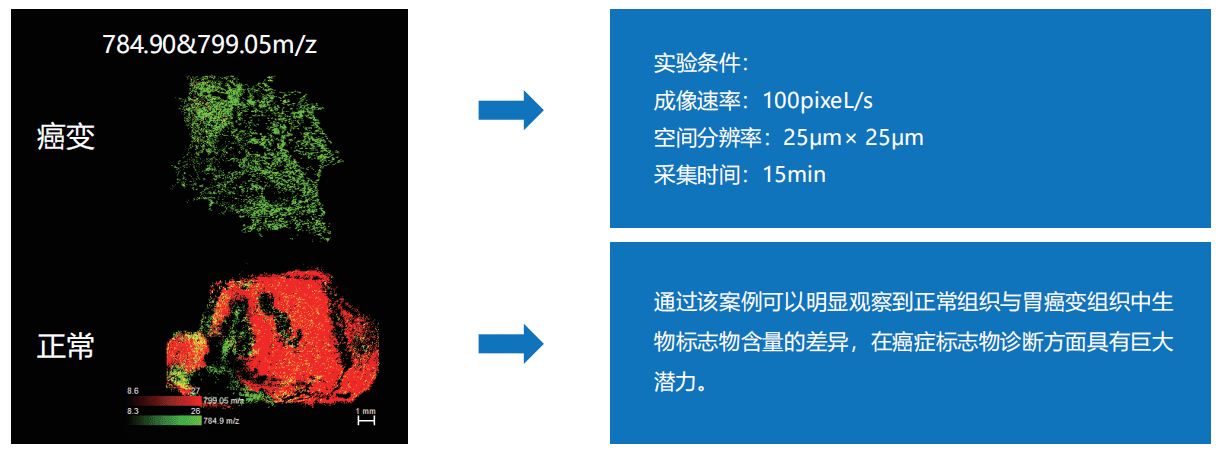 作为个体化医疗的关键词之一,肿瘤标志物相关研究方兴未艾。质谱成像技术诞生,为发现肿瘤标志物的组织特异性提供了不可替代的技术手段。QuanIMAGE系统可以同时提供高空间分辨率和高成像速度,为准确捕捉标志物提供了重要保障。