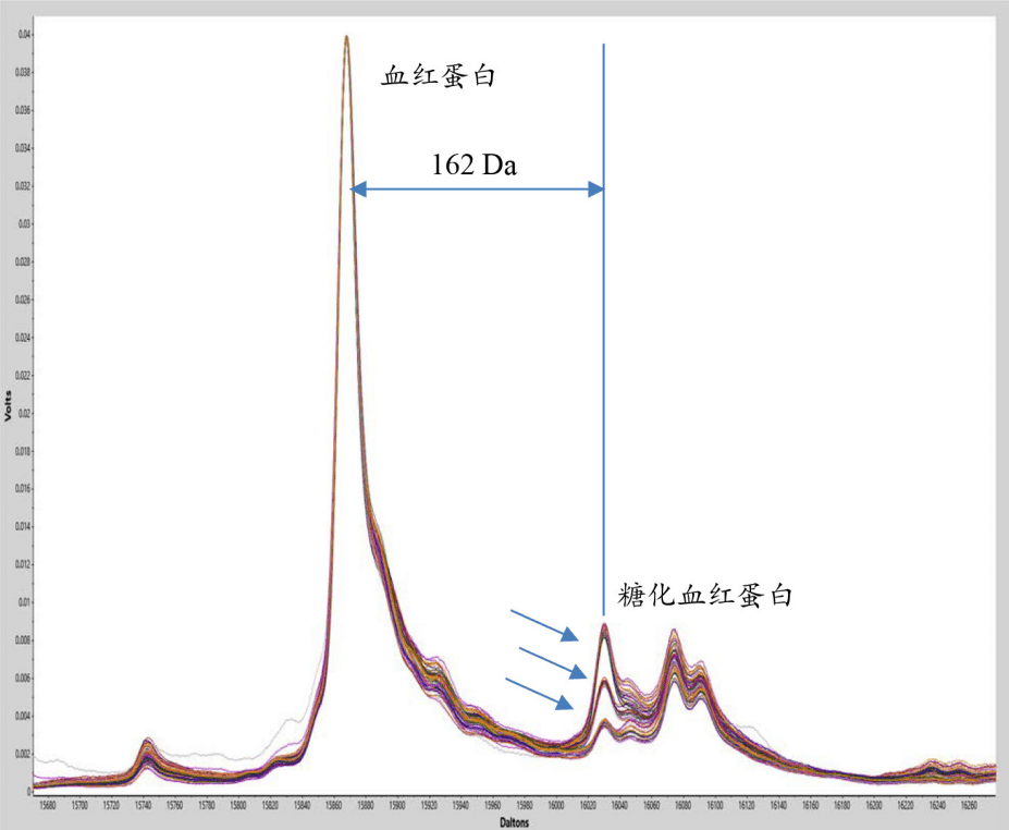 血红蛋白 β 链糖化峰质谱图叠加图