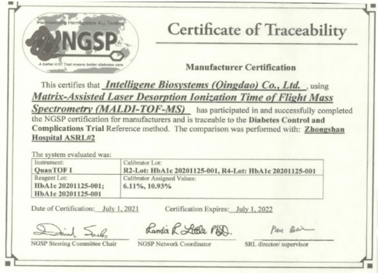 全球首个获得国际权威机构 NGSP 认证的飞行时间质谱方法