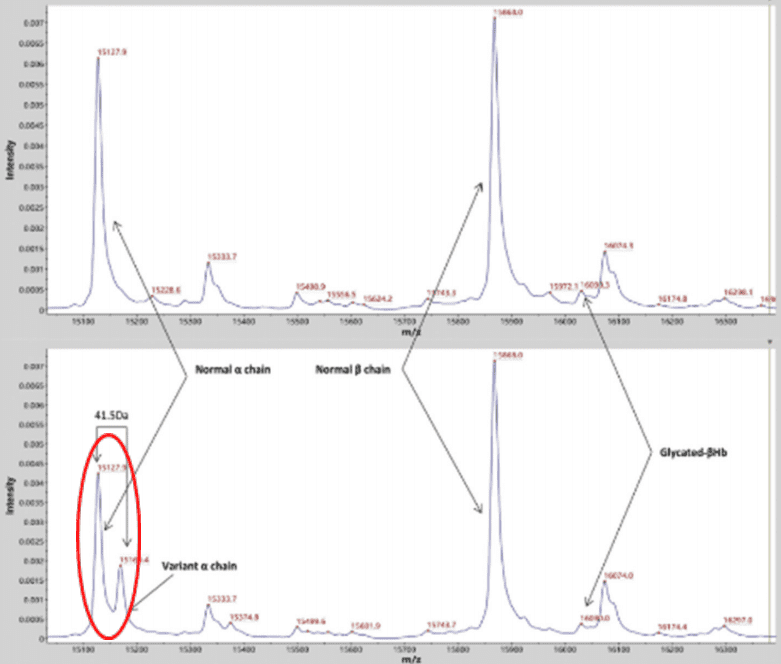 参考文献:Anping Xu, Yajun Wang, et al. Detection of a novel hemoglobin variant Hb Liaoning by matrix assisted laser desorption/ionization-time of flight mass spectrometry. Clin. Chem. Lab. Med. 2019, 57(12):e328-e330.